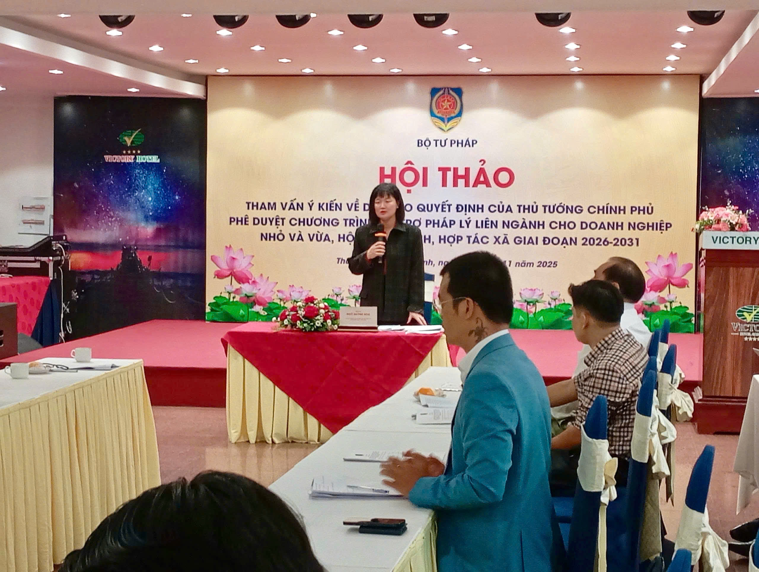 Chiều ngày 25/11, Cục Phổ biến, giáo dục pháp luật và Trợ giúp pháp lý (PB&TG) tổ chức Hội thảo “Tham vấn ý kiến về dự thảo Quyết định của Thủ tướng Chính phủ phê duyệt Chương trình hỗ trợ pháp lý liên ngành cho doanh nghiệp nhỏ và vừa, hộ kinh doanh giai đoạn 2026 – 2031” tại Thành phố Hồ Chí Minh.